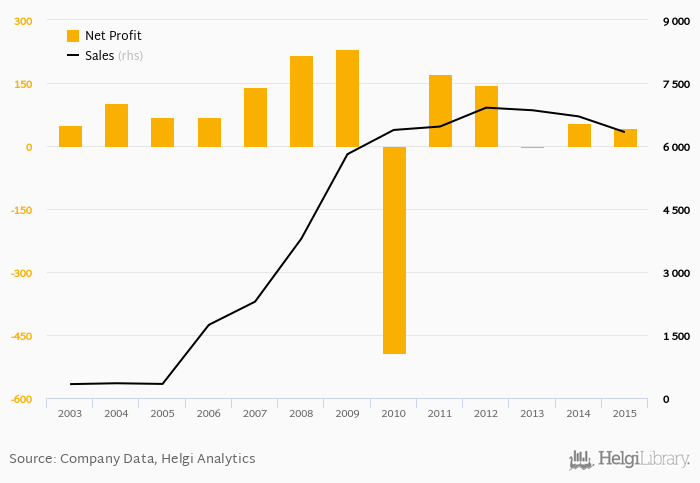 Sales have grown by 34.2% a year on average since 2005. They reached a high of CZK 6,913 mil in 2012 and a low of CZK 330 mil in 2003.