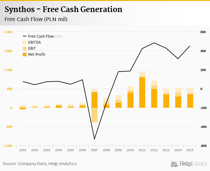 Synthos made a net profit of PLN 426 mil with revenues of PLN 4,058 mil in 2015, up by 19.7% and down by 12.1%, respectively, compared to the previous year. This translates into a net margin of 10.5%.