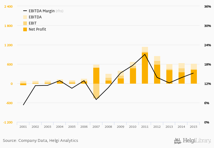 Historically, between 2001 - 2015, the firm’s net profit reached a high of PLN 960 mil in 2011 and a low of PLN -46.1 mil in 2001. Since 2010, the firm's net profit has decreased 10.5% or -2.20% a year on average.