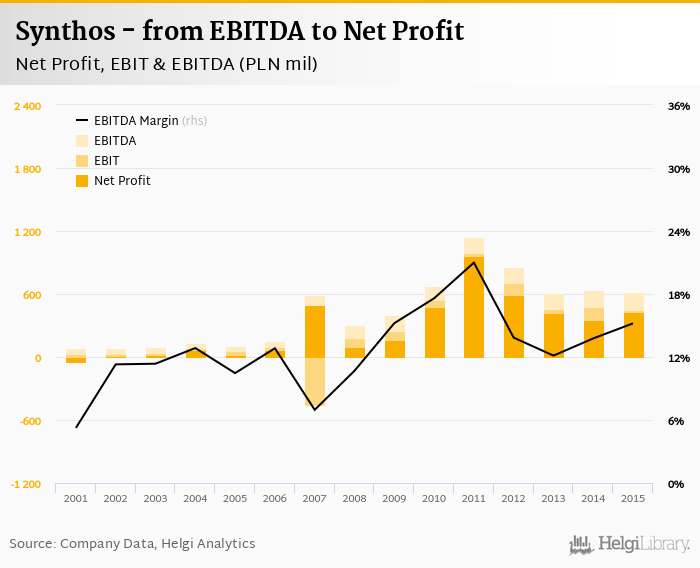 Synthos made a net profit of PLN 426 mil with revenues of PLN 4,058 mil in 2015, up by 19.7% and down by 12.1%, respectively, compared to the previous year. This translates into a net margin of 10.5%.