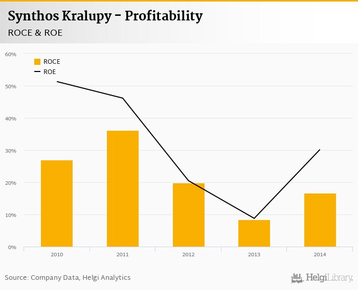 As far as Synthos Kralupy's peers are concerned, Precheza generated ROE of 18.0% and ROCE of 15.3% in 2014. Grupa Azoty's profitability reached 3.63% and 2.96%, respectively. DEZA operated with 21.7% and 14.2% returns in 2014.