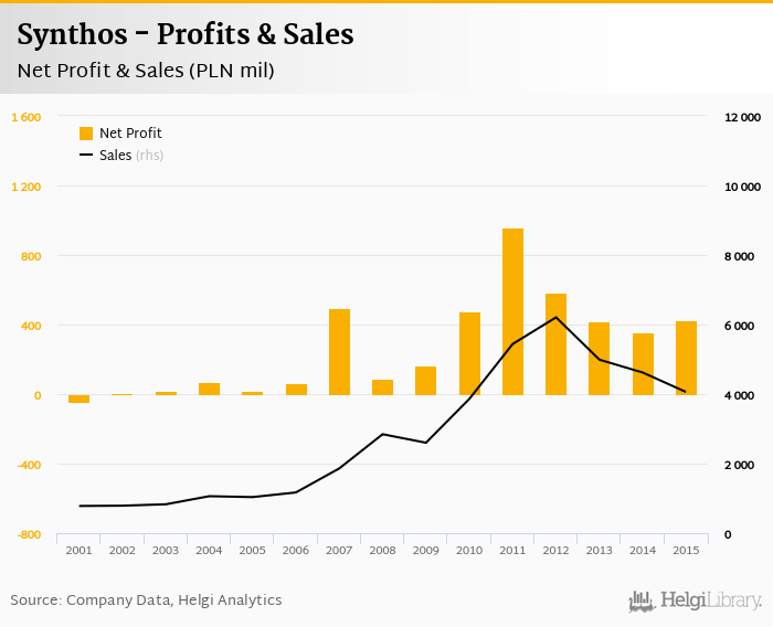 Synthos made a net profit of PLN 426 mil in 2015, up 19.7% compared to the previous year. Total sales reached PLN 4,058 mil, which is down 12.1% when compared to the previous year.