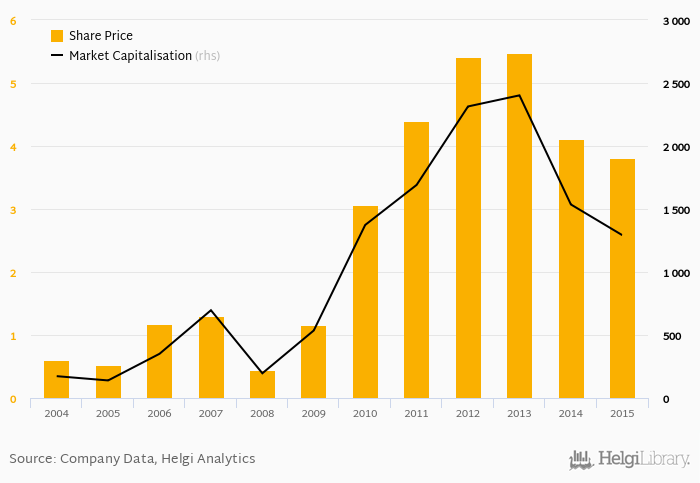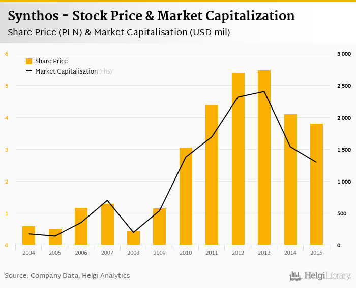 Synthos stock traded at PLN 3.81 per share at the end 2015 implying a market capitalization of USD 1,292 mil.