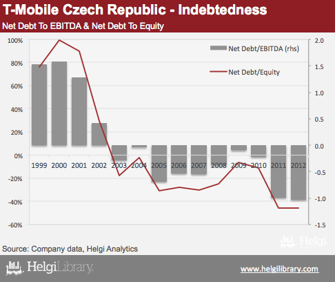 In 2012, total sales reached nearly CZK 25 bil while net profit amounted to CZK 6.95 bil. That is nearly a quarter less than in 2008. Still, Company's profitability remains impressive exceeding 25% while the Company has been operating without any debt.