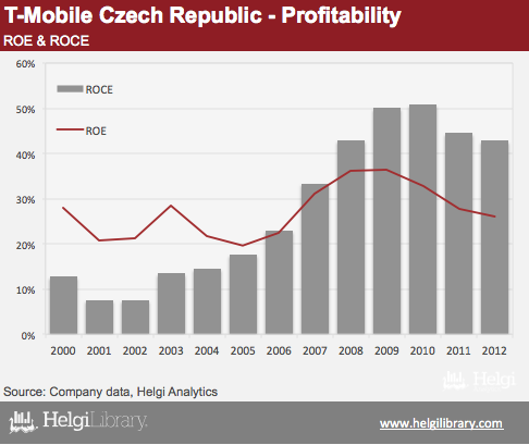 In 2012, total sales reached nearly CZK 25 bil while net profit amounted to CZK 6.95 bil. That is nearly a quarter less than in 2008. Still, Company's profitability remains impressive exceeding 25% while the Company has been operating without any debt.