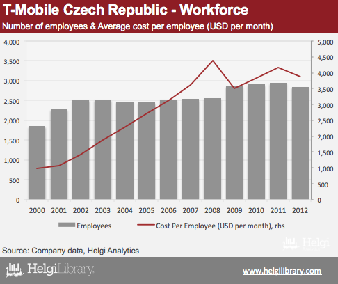 In spite of the declining sales and profits, the Company employed 11% more people in 2012 than in 2008, 2,847 persons. On the other hand, average staff cost dropped nearly 12% in the same period to USD 3,876 per person and month, on average.