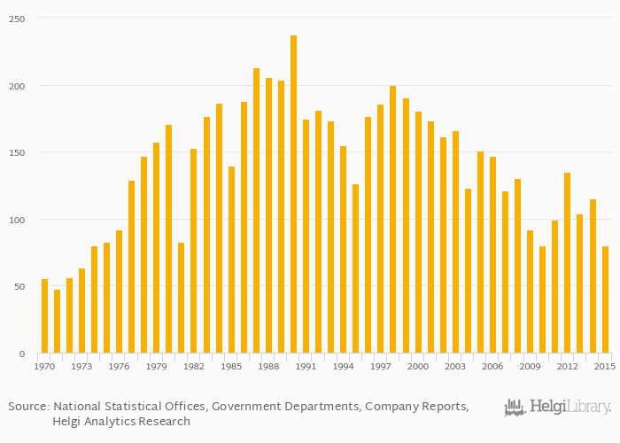 Historically, talc production in Australia reached an all time high of 238 kt in 1990 and an all time low of 47.9 kt in 1971.