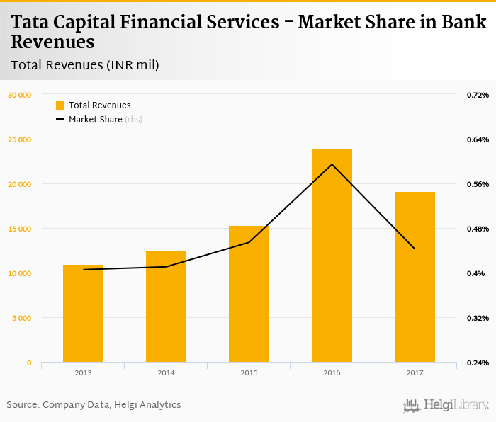 Tata Capital Financial Services generated total banking revenues of INR 19,108 mil in 2017, down 20.0% compared to the previous year.
