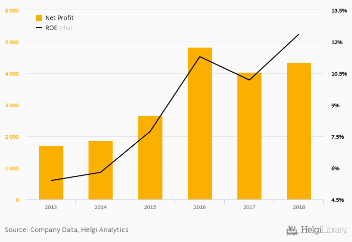 The bank generated its shareholders an average return on equity of 9.47% in the last five years with maximum at 12.4% and minimum at 5.79%