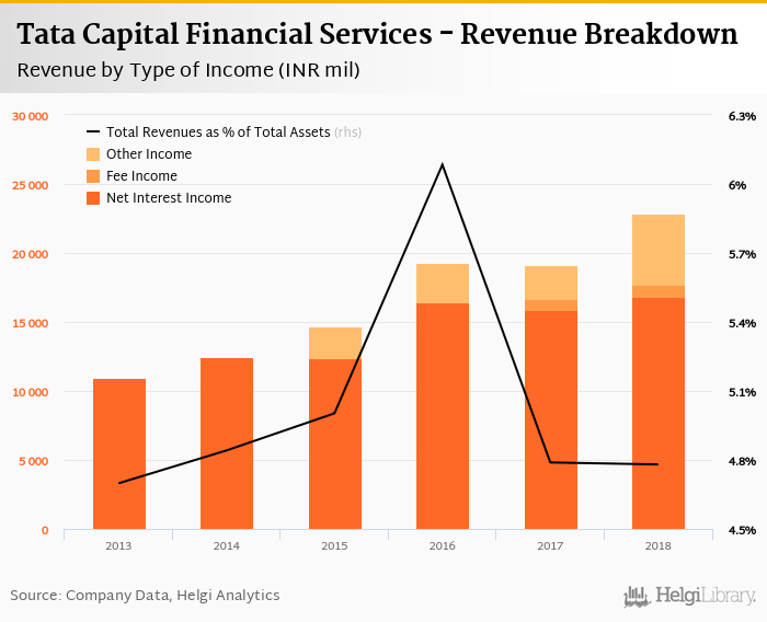 Tata Capital Financial Services generated total banking revenues of INR 22,869 mil in 2018, up 19.7% compared to the previous year.
