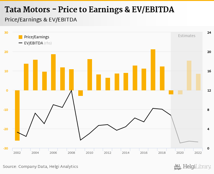 Tata Motors stock traded at INR 174 per share at the end 2019 translating into a market capitalization of USD 8,538 mil.
