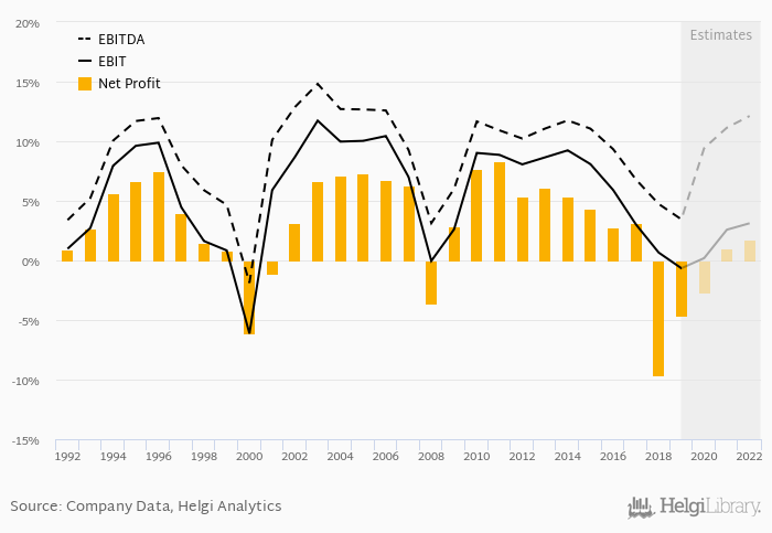 On the operating level, the EBITDA margin reached 3.45% and EBIT amounted to -0.657% of sales in 2019.
