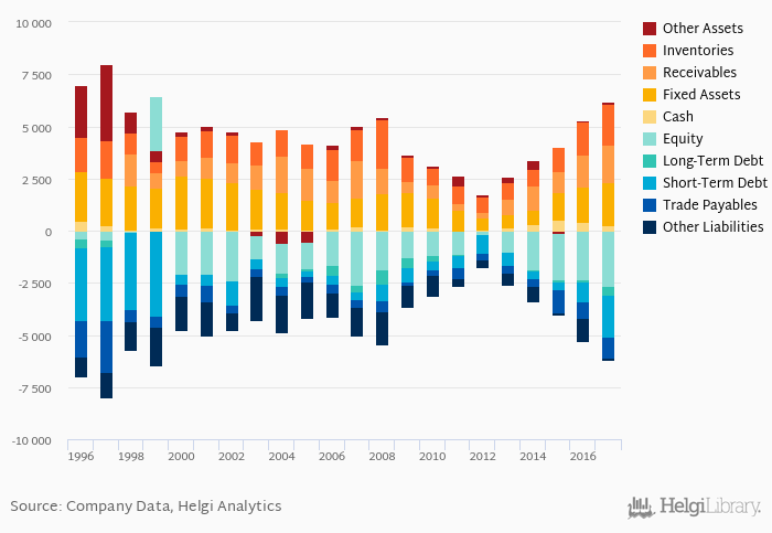 Net debt against equity is down 374 pp from five years ago (455%). The ratio against EBITDA increased from -1.79x seen in 2012 to 2.93x.