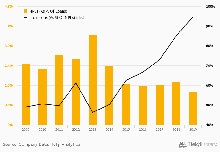 Provision coverage amounted to 94.8% at the end of 2019, up from 85.1% compared to a year earlier.