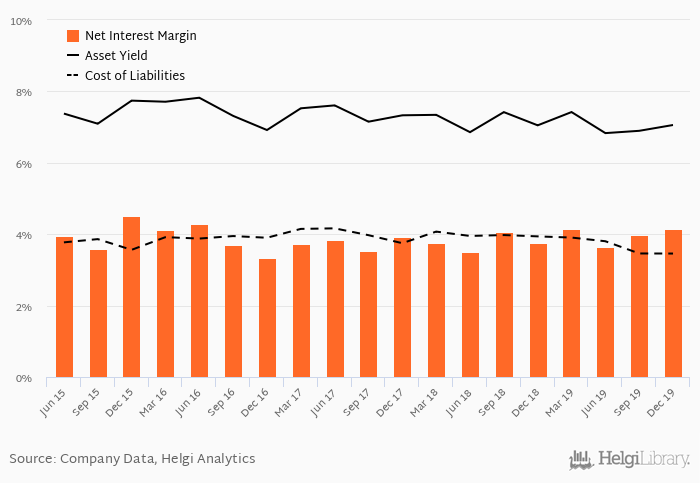 Average asset yield was 7.06% in 4Q2019, up from 7.05% when compared to the same period last year. On the other hand, cost of funding amounted to 3.46% in 4Q2019, down from 3.94%.