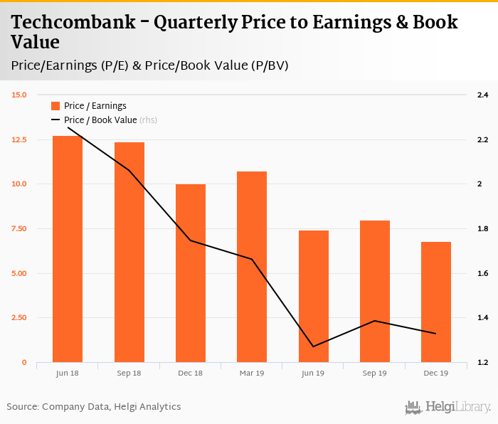 Techcombank stock traded at VND 23,550 per share at the end fourth quarter of 2019 implying a market capitalization of USD 3,557 mil.