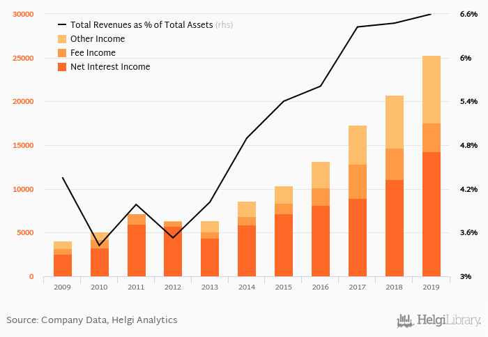 Bank's total revenues accounted for 6.60% total assets in 2019, up from 6.47% a year earlier.