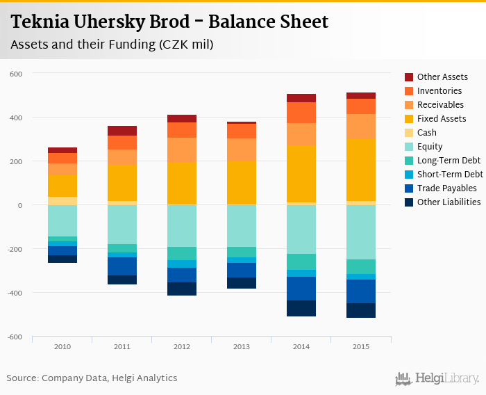 Teknia Uhersky Brod's total assets reached CZK 514 mil at the end of 2015, up 1.39% compared to the previous year.