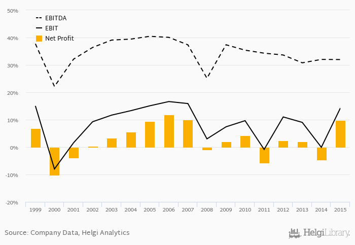 On the operating level, the EBITDA margin reached 32.0% and EBIT amounted to 14.3% of sales in 2015.