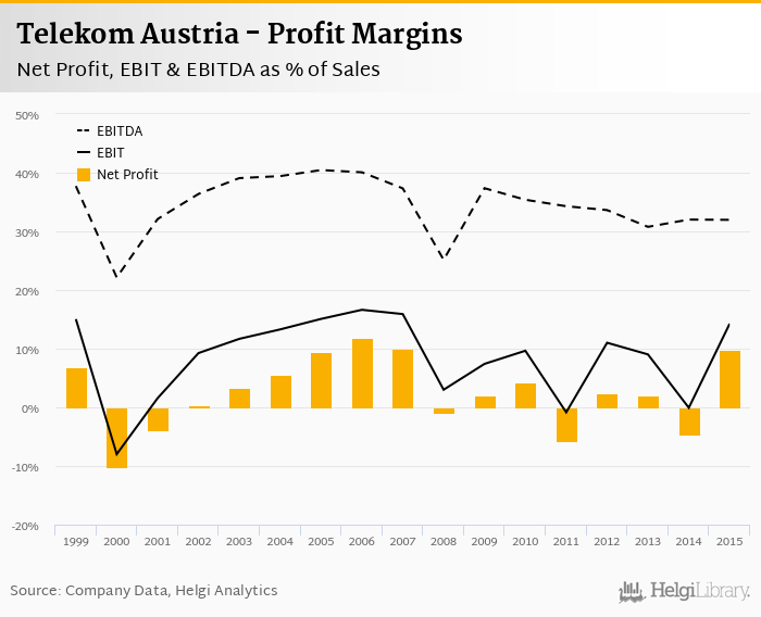 Telekom Austria made a net profit of EUR 393 mil with revenues of EUR 4,027 mil in 2015, up by 312% and up by 0.215%, respectively, compared to the previous year.