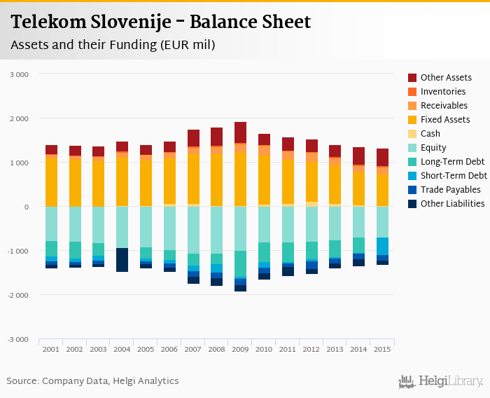 Telekom Slovenije's total assets reached EUR 1,316 mil at the end of 2015, down 2.01% compared to the previous year.