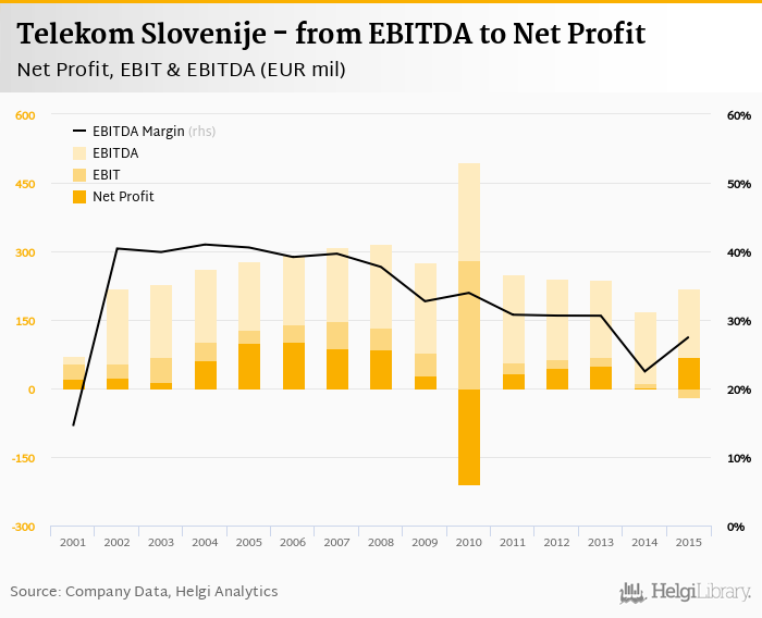 As far as Telekom Slovenije's peers are concerned, Telekom Austria posted net and EBITDA margin of 9.75% and 32.0%, respectively in 2015, Magyar Telekom generated margins of 4.22% and 28.5% and O2 Czech Republic profit margin reached 18.1% on the net and 29.7% on the EBITDA level in 2019.
