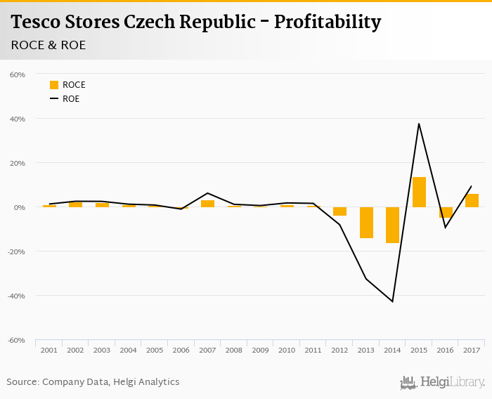 The result implies a return on equity of 9.42% and a return on invested capital of 5.89% in 2017. That is compared to an average of -7.62% and -3.01% over the last five years.