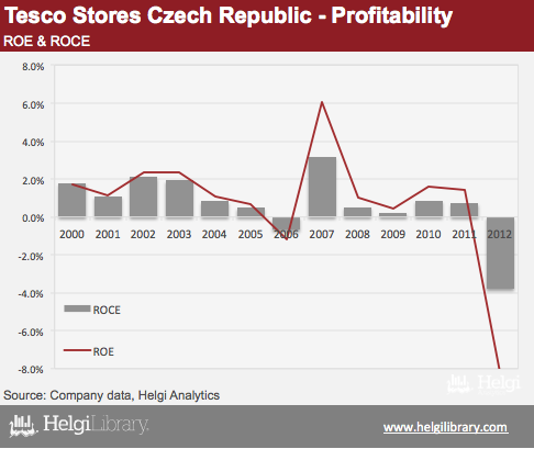 Tesco Stores Czech Republic is a Czech subsidiary of a British multinational grocery and general merchandise retailer Tesco Plc. Tesco entered the Czech market in 1996. In 2006, it took over all the hypermarkets operated by Carrefour. In the last decade, the Company has increased its sales 2.7-times on the Czech market to more than USD 2 bil. In the first time since 1996, Tesco has however shown a deep loss exceeding USD 50 mil (or CZK 1,123 mil).