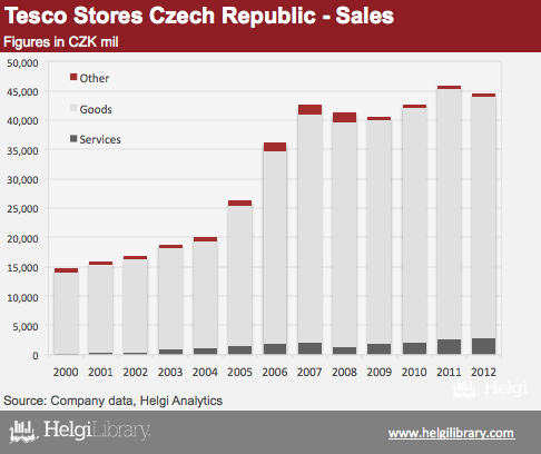 Tesco Stores Czech Republic is a Czech subsidiary of a British multinational grocery and general merchandise retailer Tesco Plc. Tesco entered the Czech market in 1996. In 2006, it took over all the hypermarkets operated by Carrefour. In the last decade, the Company has increased its sales 2.7-times on the Czech market to more than USD 2 bil. In the first time since 1996, Tesco has however shown a deep loss exceeding USD 50 mil (or CZK 1,123 mil).