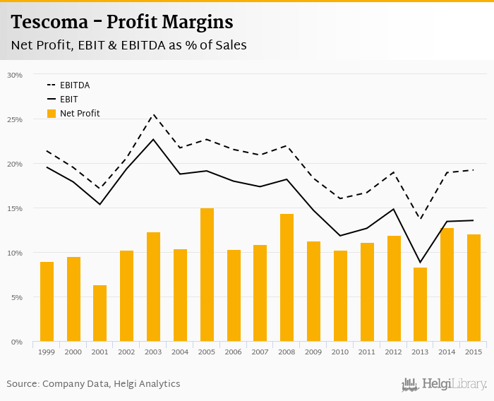 This translates into a net margin of 12.1%. Historically, between 1999 and 2015, the firm’s net margin reached a high of 15.0% in 2005 and a low of 6.33% in 2001. The average net margin in the last five years amounted to 11.2%.