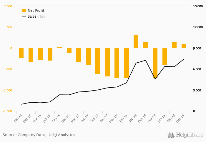 Historically, between 3Q2015 and 4Q2019, the company’s net profit reached a high of USD 312 mil in 3Q2018 and a low of USD -718 mil in 2Q2018.