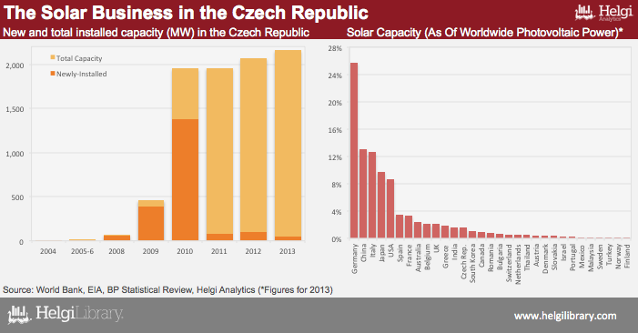 Thanks to a generous state subsidy, the Czech Republic become an important customer of photovoltaic panel producers, In 2010, the country operated nearly 5% of world's worldwide installed photovoltaic power (or 1,953 MW). Following the subsidy cuts, however, the solar boom slowed down significantly and Czech Republic's global share dropped to "only" 1.55%.