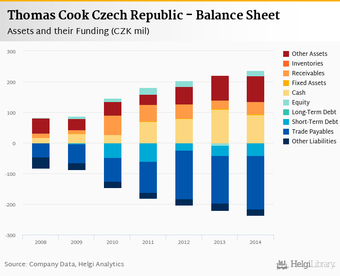 Thomas Cook Czech Republic's total assets reached CZK 219 mil at the end of 2014, down 0.581% compared to the previous year.