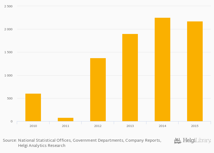 Historically, tin (smelter) production in Poland reached an all time high of 2,253 tonnes in 2014 and an all time low of 82.0 tonnes in 2011.