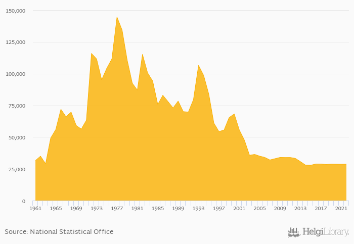 Historically, unmanufactured tobacco production in South Korea reached an all time high of 144,533 tonnes in 1977 and an all time low of 27,834 tonnes in 2015. When compared to South Korea's main peers, unmanufactured tobacco production in China amounted to 2,188,100 tonnes, 86,871 tonnes in Dem. People's Republic of Korea, 8,782 tonnes in Japan and 34,872 tonnes in Vietnam in 2022.