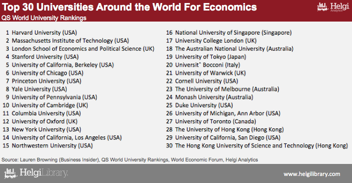 But not every school shows strength in its economics department. QS World University Rankings published a list of the best schools in the world for economics.