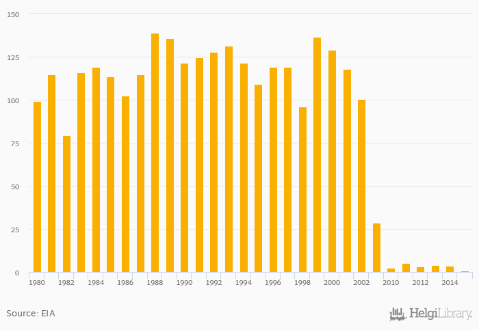 Tunisia has been ranked 124th within the group of 126 countries we follow in terms of total coal consumption, 124 places below the position seen 10 years ago.