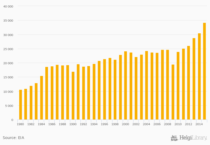 Historically, total coal consumption in Brazil reached an all time high of 34,172 kt in 2015 and an all time low of 10,576 kt in 1980.