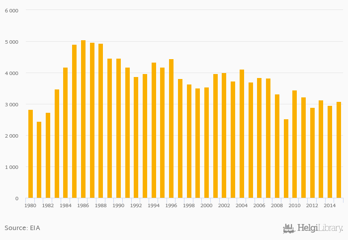 Historically, total coal consumption in Sweden reached an all time high of 5,053 kt in 1986 and an all time low of 2,452 kt in 1981. When compared to Sweden's main peers, total coal consumption in Denmark amounted to 3,458 kt, 4,438 kt in Finland, 869 kt in Norway and 228,176 kt in Russia in 2015.