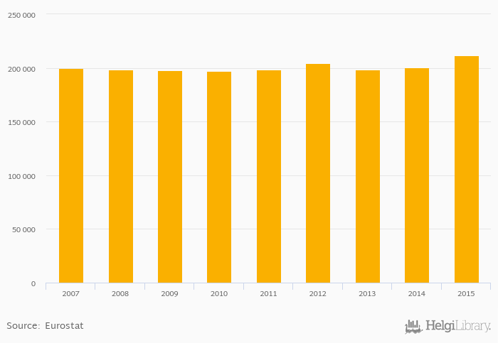 | Spain | ... | ... | ... | ... | ... | ... | ... | ... | ... | ... | ... | ... | 197,901 | 196,832 | 198,528 | 204,650 | 198,553 | |||||
