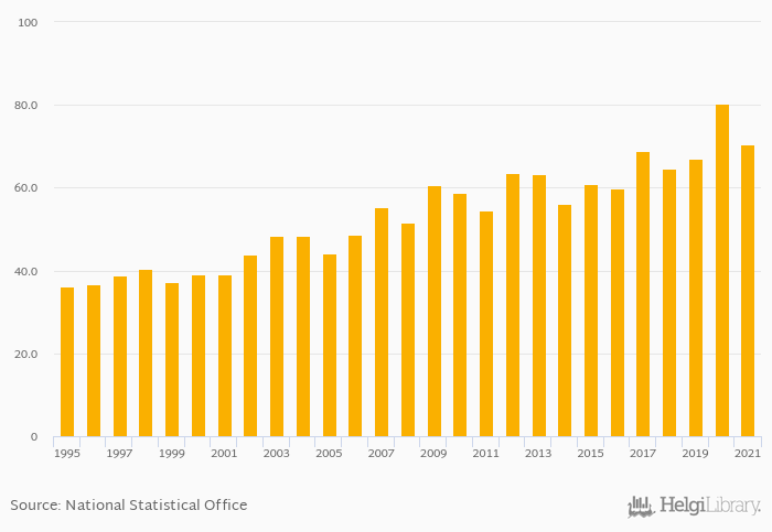 Total household liabilities as of GDP fell 12.0% to 70.5% in Luxembourg in 2021, according to OECD.