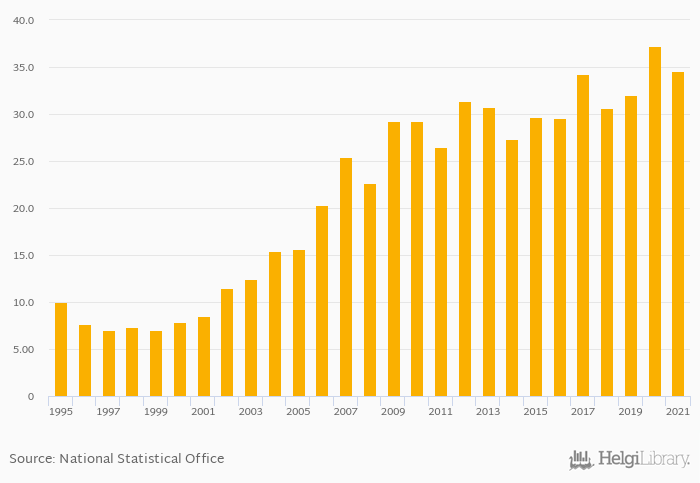 | Czechia | % | 29.7% | 29.5% | 34.3% | 30.6% | 32.0% | ||||||||||||||||