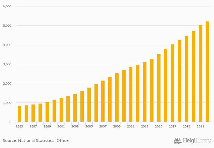 Historically, total household liabilities in Sweden reached an all time high of SEK 5,227 bil in 2022 and an all time low of SEK 820 bil in 1995.
