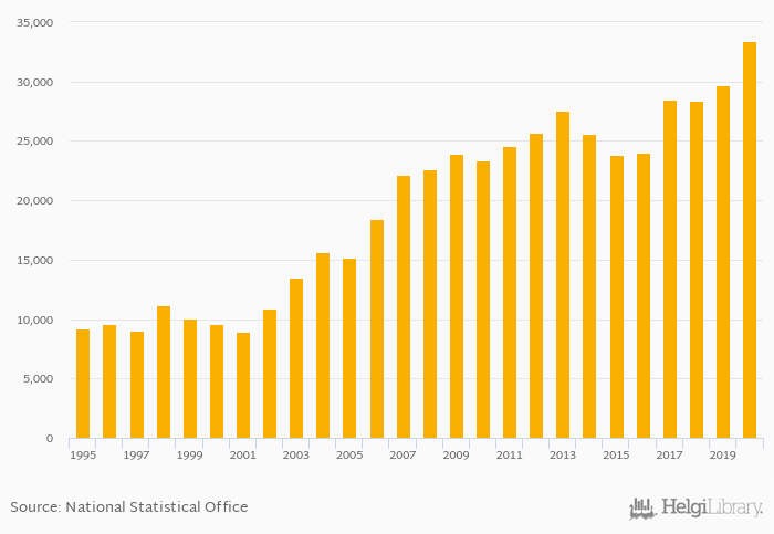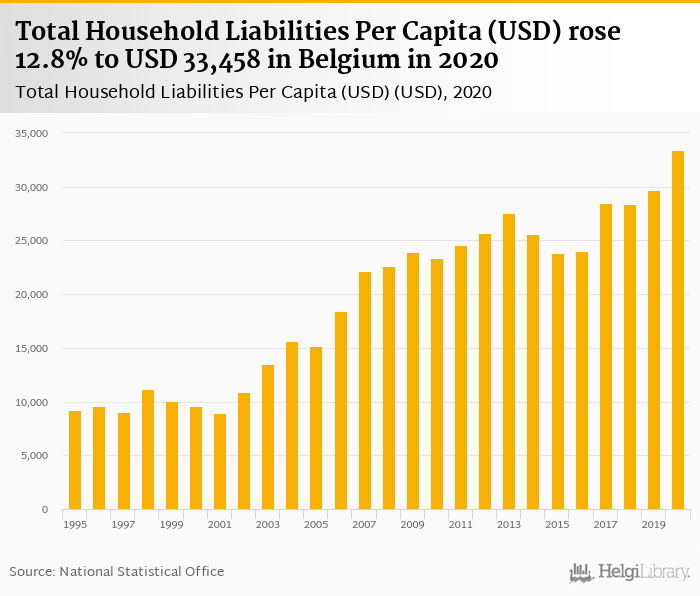 Total household liabilities per capita rose 12.8% to USD 33,458 in Belgium in 2020, according to OECD.