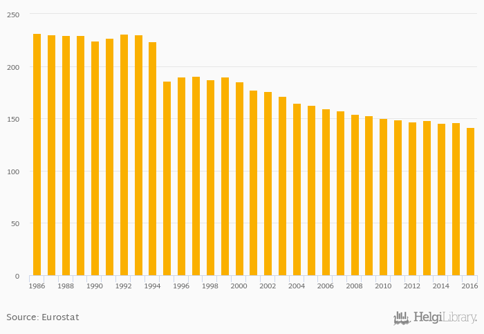 Historically, total labour force in agriculture in Netherlands reached an all time high of 232 '000 in 1986 and an all time low of 142 '000 in 2016.