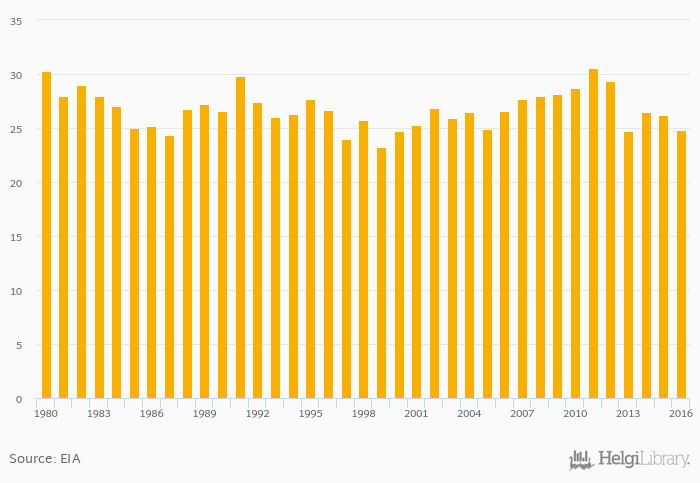 Total oil supply fell 5.10% to 24.8 '000 bpd in Austria in 2016, according to EIA.