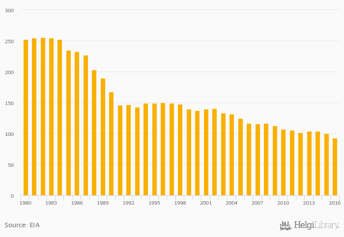 Total oil supply fell 6.76% to 93.1 '000 bpd in Romania in 2016, according to EIA.