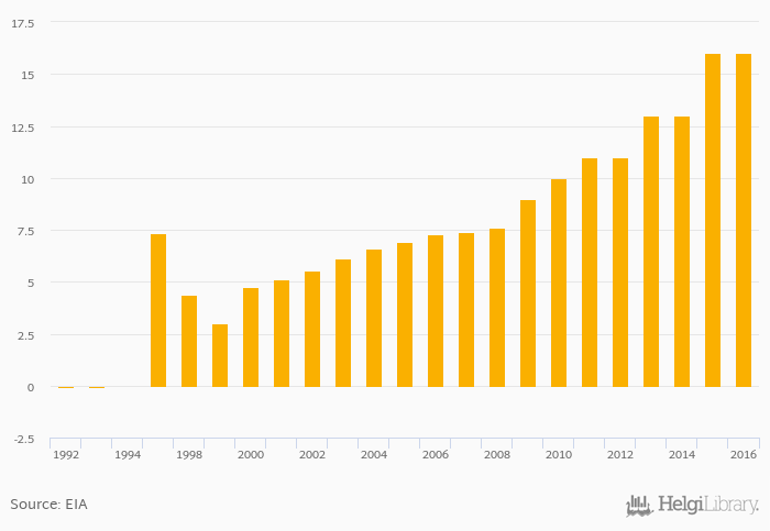 Total oil supply rose 0% to 16.0 '000 bpd in Estonia in 2016, according to EIA.
