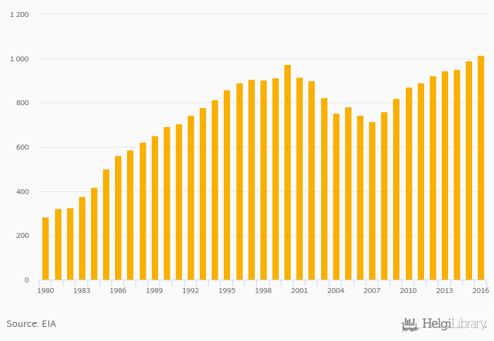 Total oil supply rose 2.51% to 1,015 '000 bpd in Oman in 2016, according to EIA.