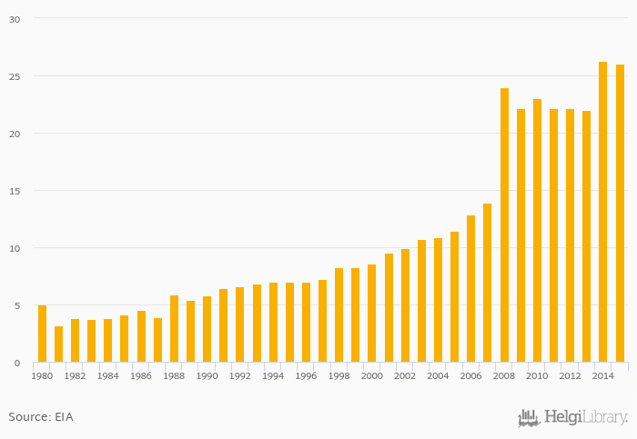 Total petroleum consumption fell 1.09% to 26.0 '000 bpd in Uganda in 2015, according to EIA.